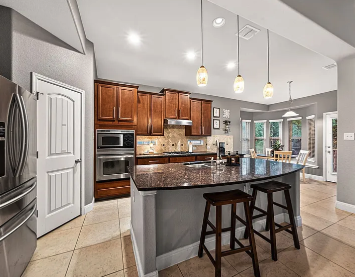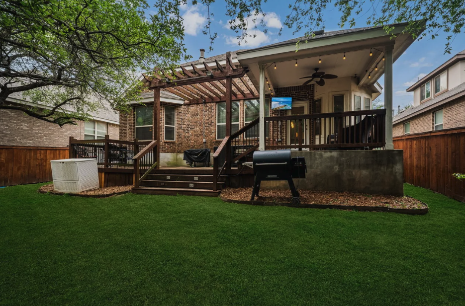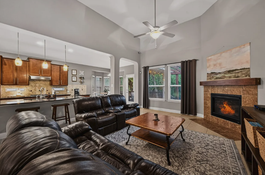This beautifully maintained two-story home offers thoughtful design throughout. The main floor features soaring ceilings in the living room centered around a cozy fireplace, a dedicated home office, and a separate formal dining room. The open kitchen is well-appointed with a gas cooktop, built-in oven and microwave, dishwasher, ample counter space, breakfast bar, and a casual breakfast nook - all flowing seamlessly into the living area. The primary suite is also conveniently located on the main floor, featuring a large bay window, double vanity, soaking tub, and walk-in shower. Upstairs offers a spacious gameroom/loft, three secondary bedrooms, and a full bath with double vanity - providing generous additional living and entertaining space. Out back, a covered patio with an extended deck and ceiling fan creates a comfortable outdoor retreat within a fully fenced yard shaded by mature trees. The property backs to a greenbelt offering added privacy with no rear neighbors. Located in Fair Oaks Ranch within Boerne ISD - schedule your showing today!