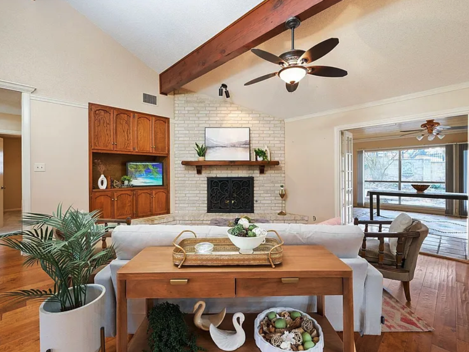 One-of-a-kind Fair Oaks Ranch single-story on 1.67 serene acres - quality-built and lovingly owned for 35+ years. This rare 4-bedroom, 3-bath home plus dedicated office blends timeless character and modern updates: metal roof, NEW water heater, cedar closet, updated traditional kitchen with eat-in area and antique built-ins, and a custom wet bar made for entertaining. Warm wood floors flow through the main living area to a dramatic floor-to-ceiling gas fireplace. Thoughtful, functional layout with ample storage throughout and a bedroom that includes its own dedicated full bathroom - ideal for guests or multi-generational living. The entire property is fenced with its own gated entrance, surrounded by mature trees for privacy, and includes a shed for extra storage. Step outside to a back patio that feels like a private sanctuary with tranquil water fountains and an expansive outdoor space. Enjoy true Texas Hill Country living while being conveniently close to I10, restaurants and shopping. Practical conveniences include a 2-car garage, circular drive and additional parking. Don't miss this rare chance to own a meticulously maintained, move-in-ready home in the highly coveted Fair Oaks Ranch - a once-in-a-generation opportunity!